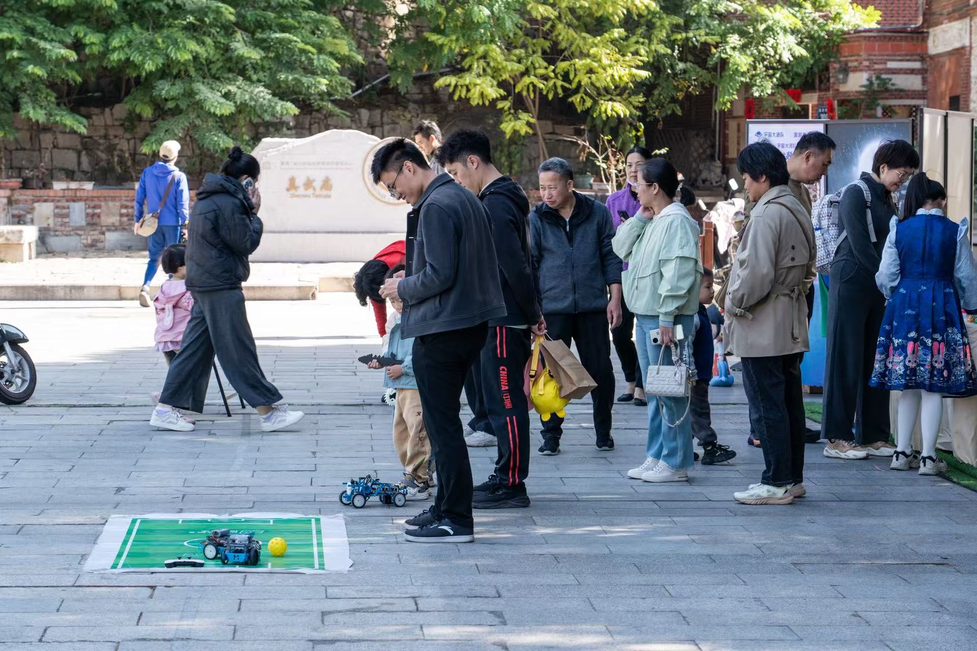 在科普互動區(qū),居民們親手操作、親身體驗(yàn)無人機(jī)足球、無人機(jī)模型、AI圍棋對弈、3D打印產(chǎn)品等科普互動裝置。